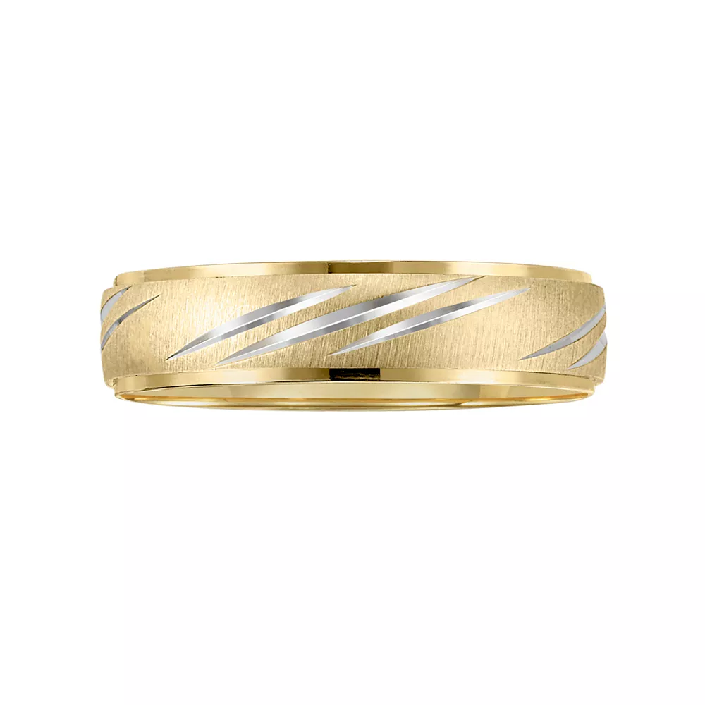 Diamond-cut accents and a brushed finish make this men’s band a handsome choice.