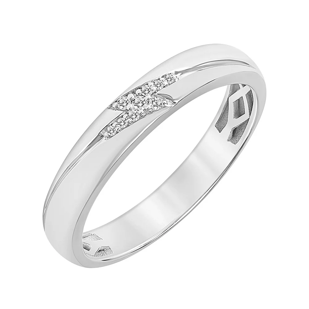 This 10k white gold men’s AXL wedding band makes a statement with its diamond accent.