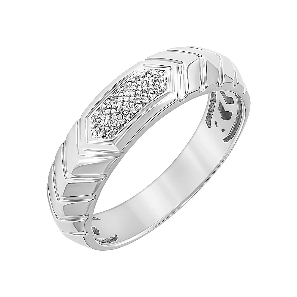 Not like other wedding bands, this 10k white gold men’s AXL ring is enhanced with a diamond detail for added sophistication.