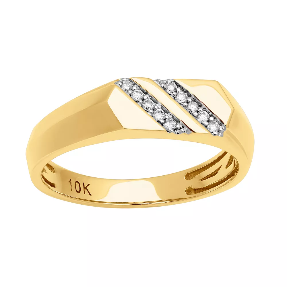 Sophisticated and sharp, this 10k yellow gold men’s AXL wedding band will compliment any look.