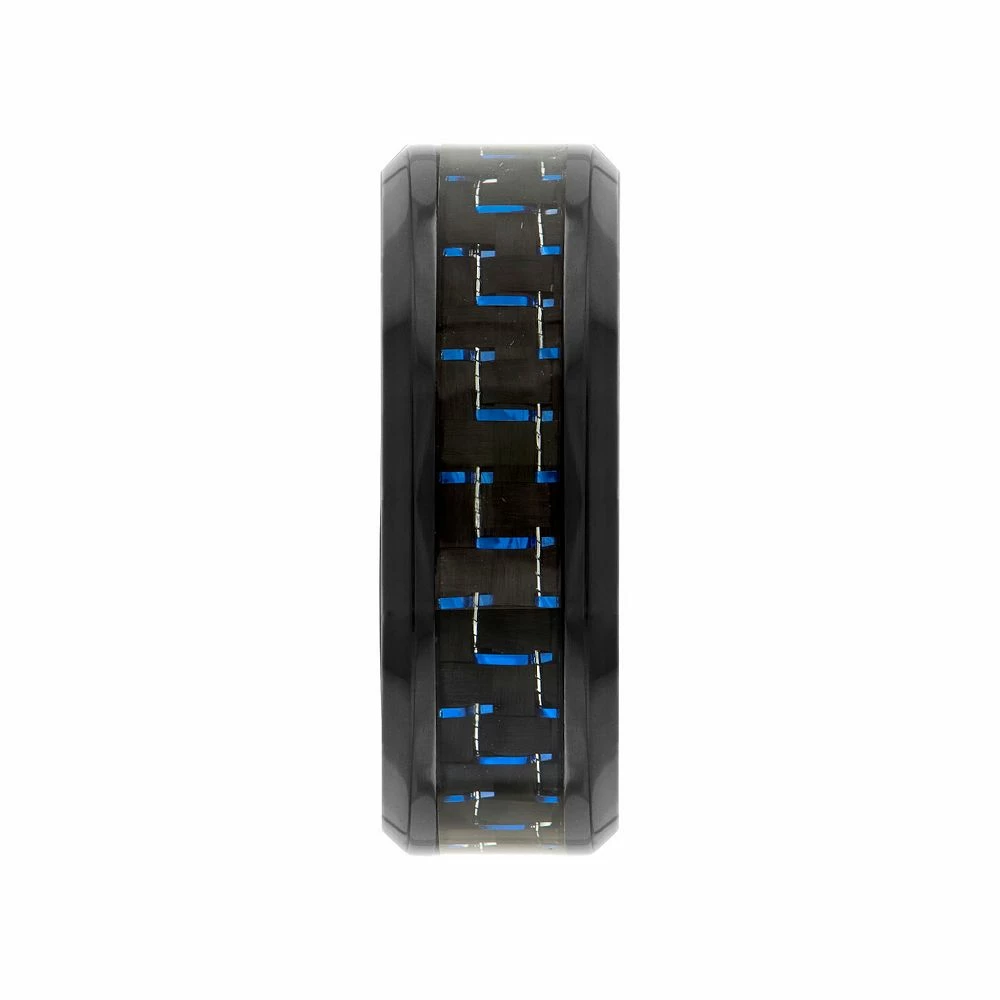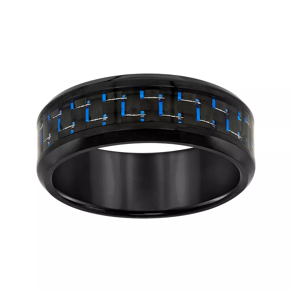 He’ll love the unique design of this AXL black titanium with carbon inlay men’s wedding band.