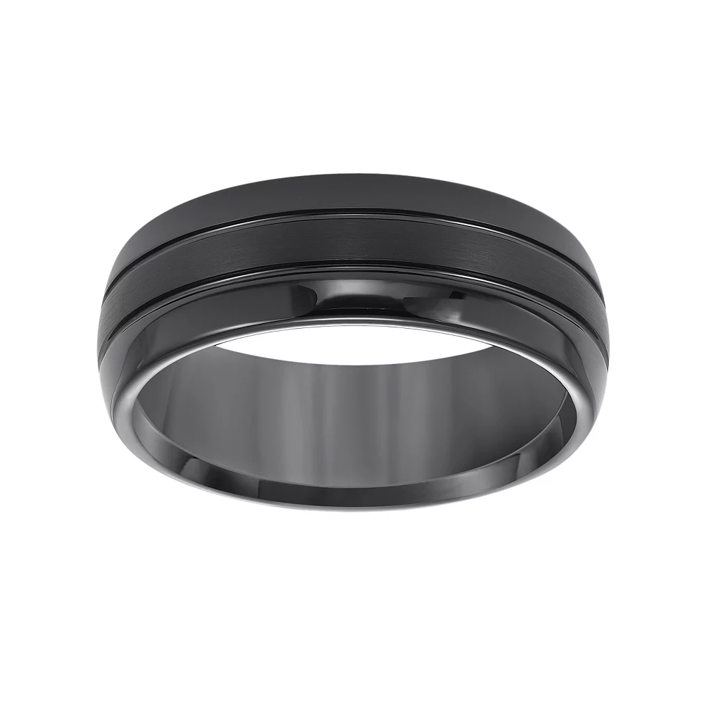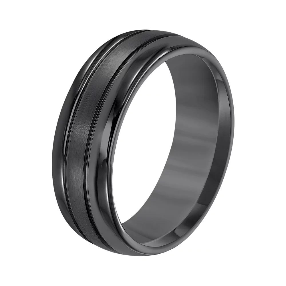 Grooved accents and a brushed finish give this men’s band striking style.
