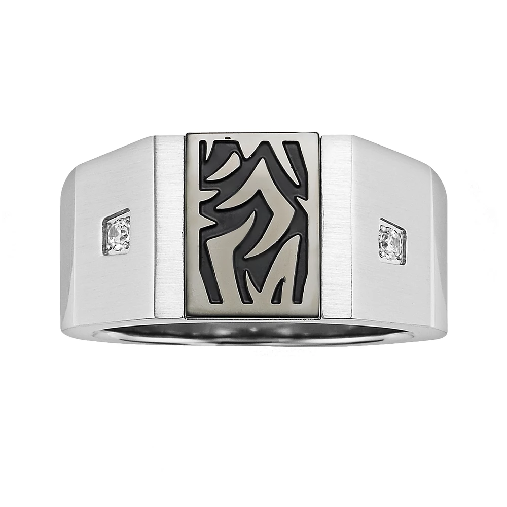 Add some wild to your style with this stainless steel diamond accent tattoo ring.
