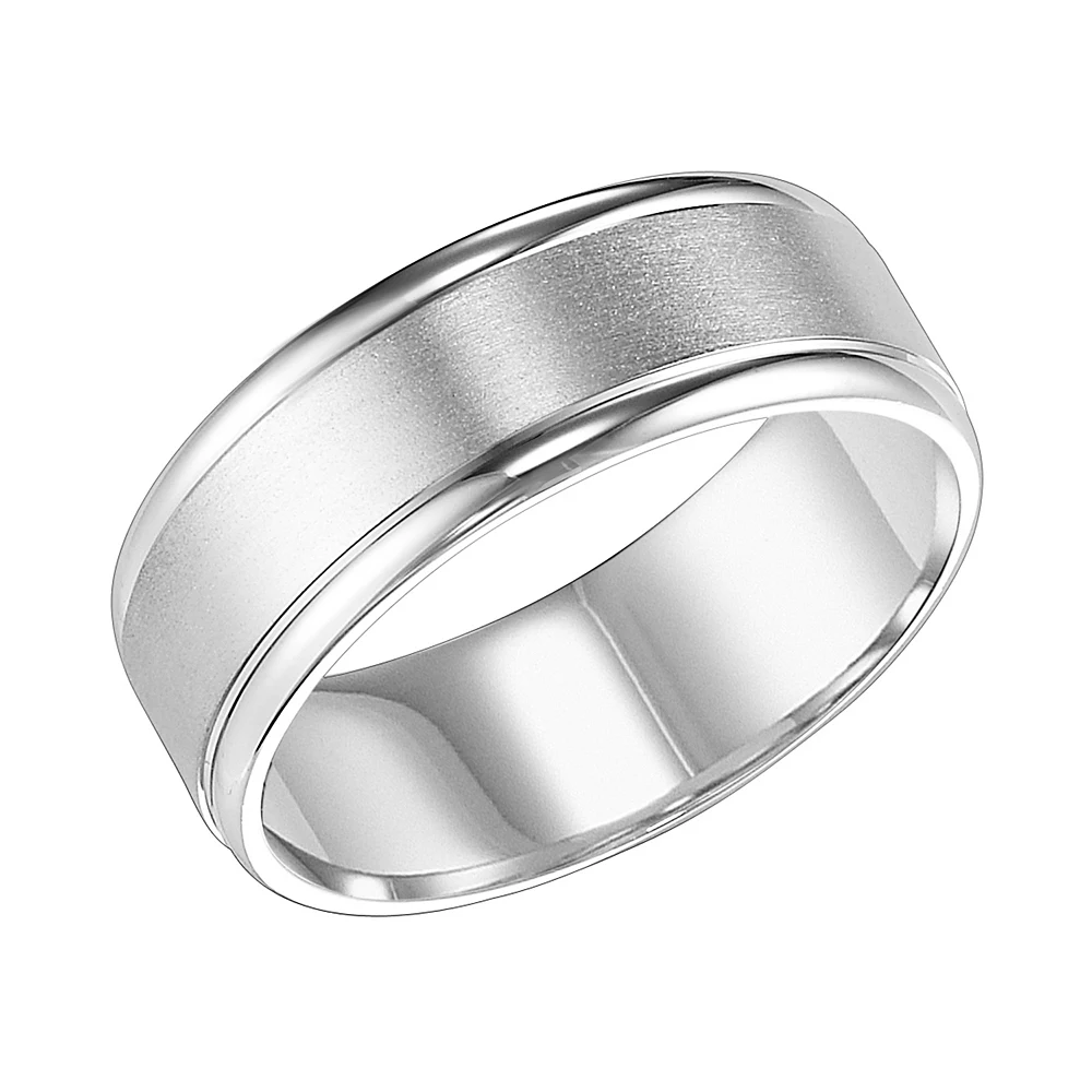 Elegantly decorated with a brushed finish, this men’s AXL 14k white gold wedding band is a sophisticated choice.