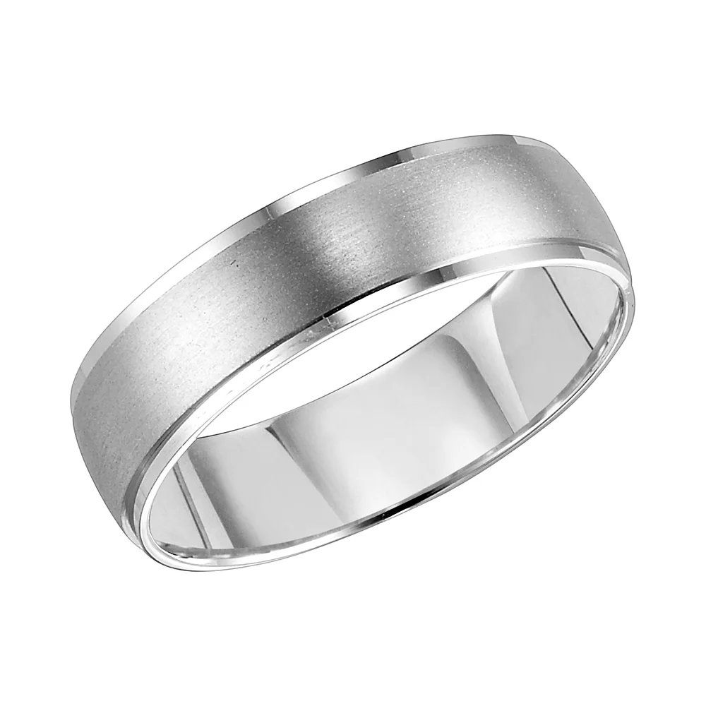 Featuring flat edges and a satin finish, this men’s AXL 14k white gold wedding ring is an impressive symbol of your commitment.