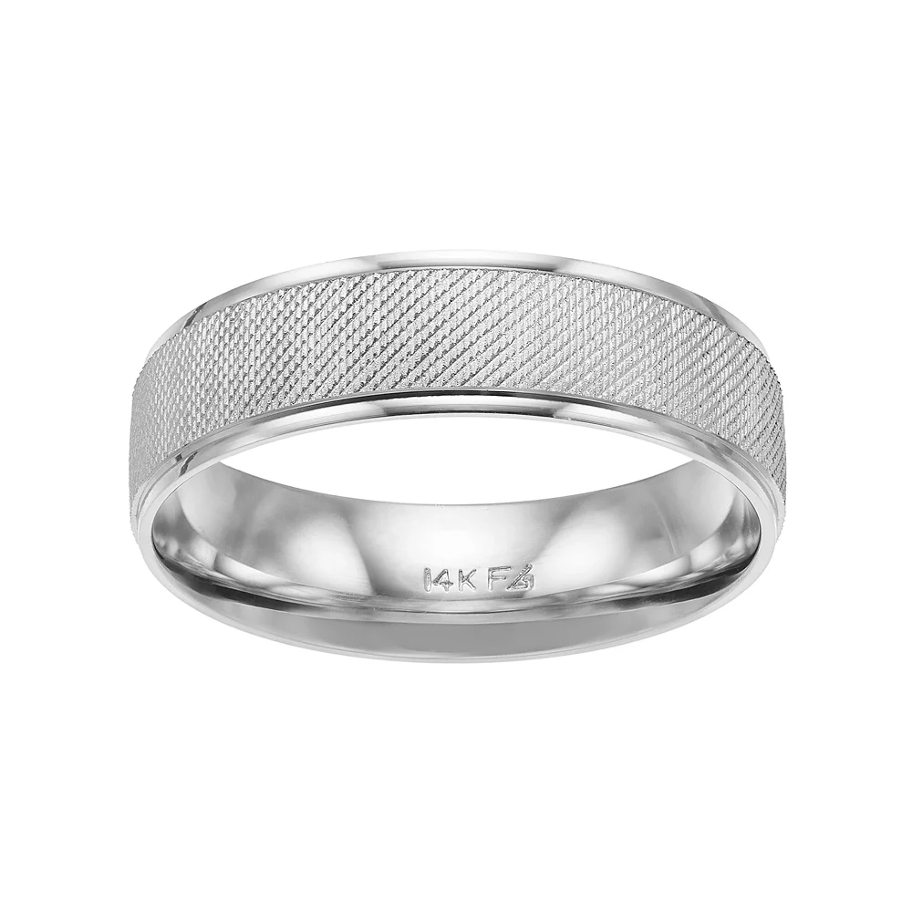 Textured details and a brushed finish give this men’s AXL wedding band modern styling.