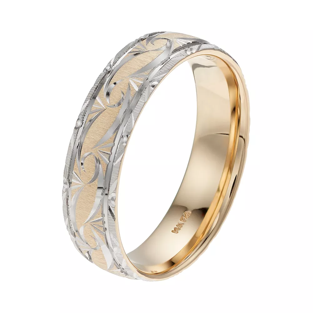 Adorned with an ornate motif, this men’s AXL two tone wedding band conveys your love in an eye-catching way.