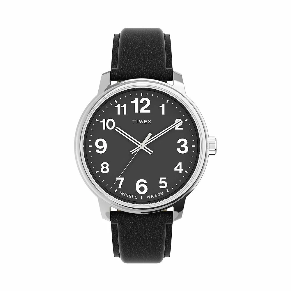 Combining an easy-to-read black dial with a black natural leather strap, this Timex Easy Reader watch provides effortless style.
