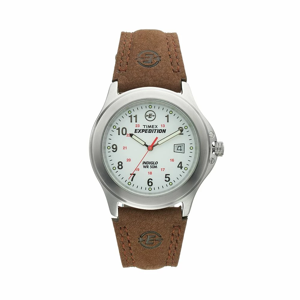 Upgrade your outdoor gear with this masculine Timex Expedition leather watch for men. Comes in a gift box.