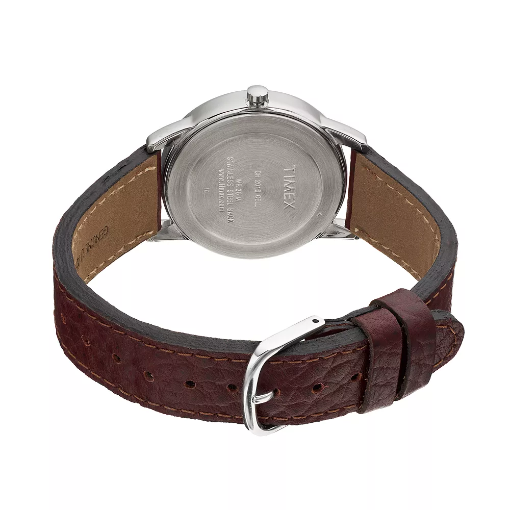 Add classic style to any attire with this handsome men’s leather Wardrobe Essentials watch from Timex. Comes in a gift box.