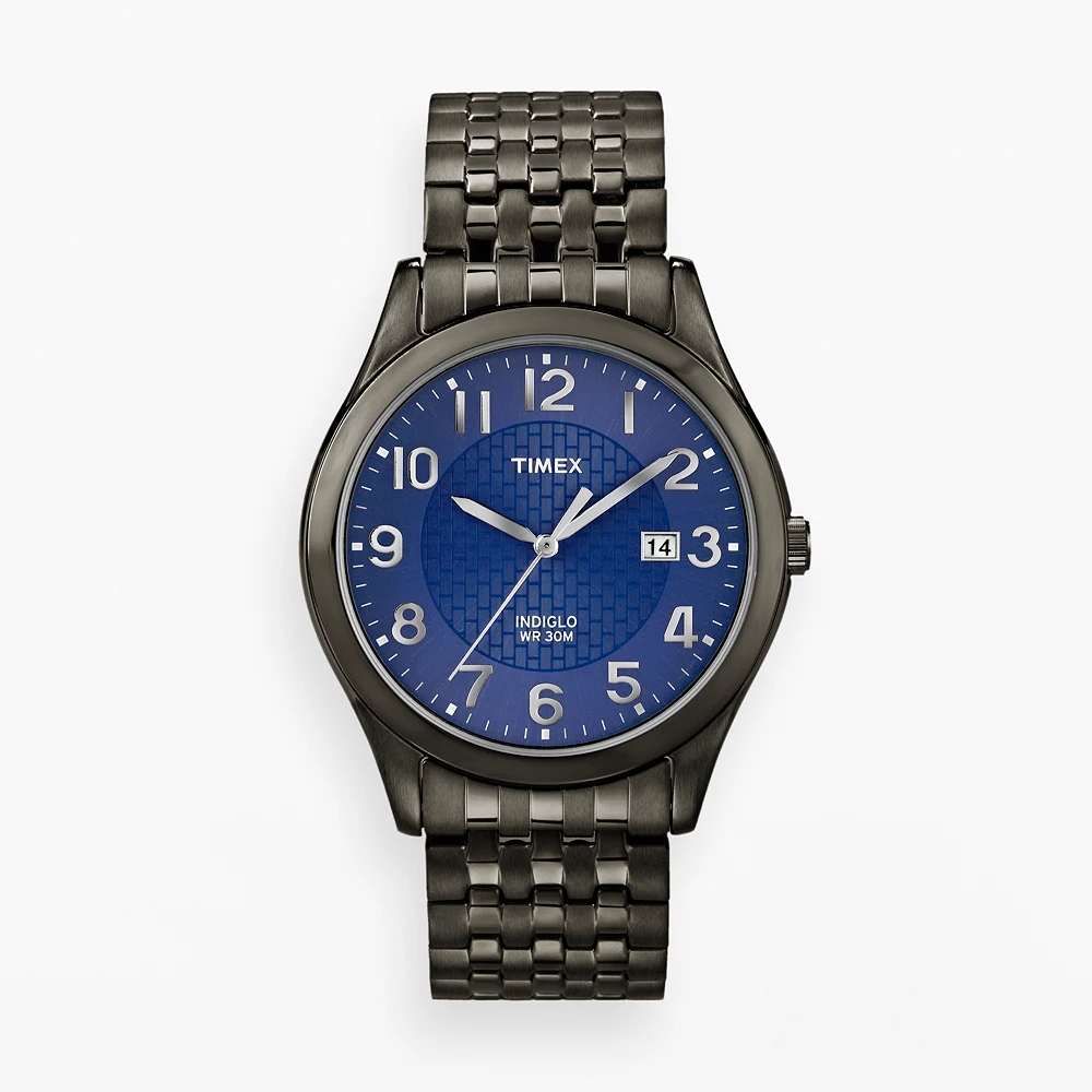 - Dial: textured blue with silver-tone hands & Arabic numerals, & Indiglo nightlight